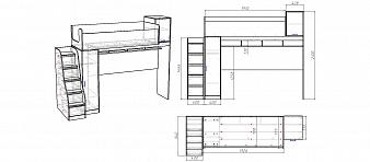 Кровать-чердак со столом и шкафом Фимо 1 BMS