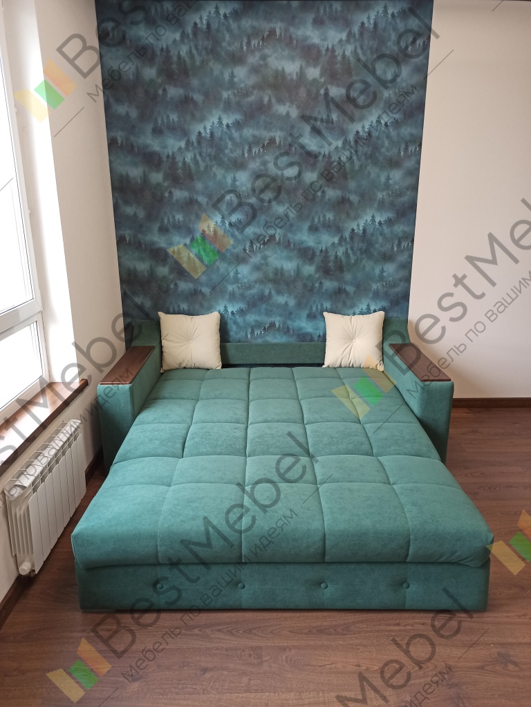 Всё не доходили руки сразу написать... Заказал месяц назад, изготовили примерно за неделю, привезли и доставили аккуратно и в срок. Немного поругались с грузчиками-водителями, т.к. хотели взять больше за подъём, но стоило им упомянуть о расценках на сайте - сразу согласились и уехали рассерженные. Всего привезли и подняли 2 части дивана - в одной был сам диван-аккордеон и подушки, в другой боковые подлокотники и фиксирующая их спинка.Затем сам собрал примерно за час, т.к. там правда простая конструкция оказалась, всё вставляется в пазы и закручивается гаечным ключом или даже плоскогубцами.К сожалению, пока так и не успел поспать на нём и оценить функционал, но есть пару нюансов о которых хочу рассказать и может стоит их даже доработать.Во-первых, он немного низковат - высота от пола вроде 40 см. Если бы добавить 3-4 см, то сидя человек ростом в +-170 см чувствовал себя на нём идеально, а так бедра не полностью лежат на поверхности дивана. То есть нужно вытягивать ноги дальше что бы полноценно положить их на поверхность.Во-вторых, если садиться достаточно близко к подлокотникам, то присутствует небольшой эффект проваливания в сторону подлокотника, как будто бы каркас под диваном немного меньше. (у меня размеры дивана полностью стандартные: 2030х920х1050)А так в целом пока доволен. Надеюсь не разочарует когда посплю на нём.