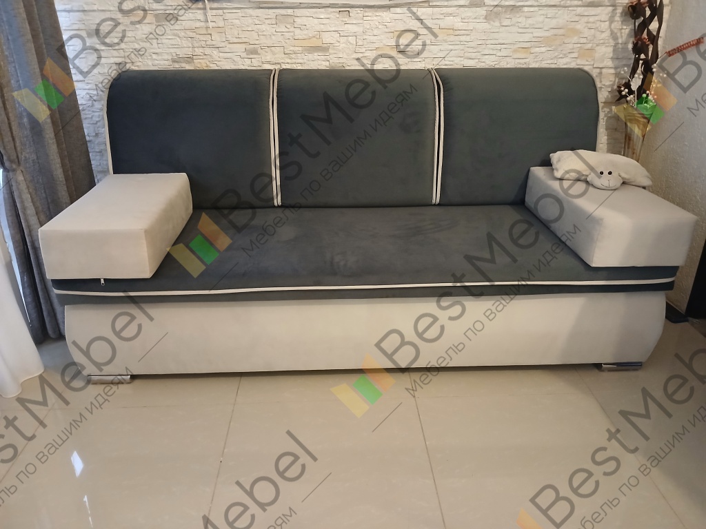 Диван очень нравится, удобный, в меру жёсткий, лежать удобно, ящик для белья вместительный. А главное подушки интересные, хочешь на диван поставишь, а хочешь подлокотники из них сделай. Обивку подобрали, как хотели. Очень довольны.