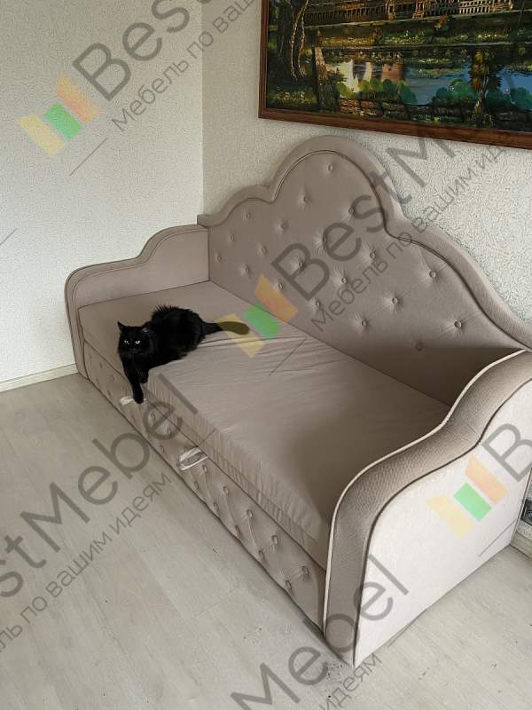 Прекрасное исполнение👍. Неожиданно, вместе с другой мебелью, заказали девочке 8ми лет, с расчетом на вырост, и остались очень довольны! Цвет ткани отдельный восторг, не красный, а красивый тёмно-розовый насышенный (велюр Италия 15). Очень рекомендую.