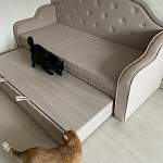 Привезли чуть раньше срока. Заказ выполнили точно. Пару раз звонили с уточняющими вопросами с производства. Моя Софа обошлась дороже, так как я поменяла обивку со стандартной велюр, на флок. Это было правильное решение, так как эта обивка не поддается когтям котов и шерсть не прилипает к ней. А так же изменила стандартный наполнитель на более плотный. Лежать удобно, спина и шея отдыхают. Удобный механизм, справится даже ребёнок. Доски крепкие у бельевого ящика и есть деревянная крышка. Воспользовалась услугой сборки. Ребята справились быстро, минут за 20. Сборщики вежливые и аккуратные. Жаль, что не смогла на сайте подобрать кресла в комплект и пришлось изготавливать на заказ в другом месте. Несмотря на вместимость диван смотрится компактно. Классический будуарный стиль. Неплохо было бы производителю расширить выбор фурнитуры. Например я готова была бы ещё дороже заплатить если бы вместо тканевых пуговиц на каретной стяжке были стразы, а вместо тканевого Канта золотой обивочный канат. В целом я довольна.