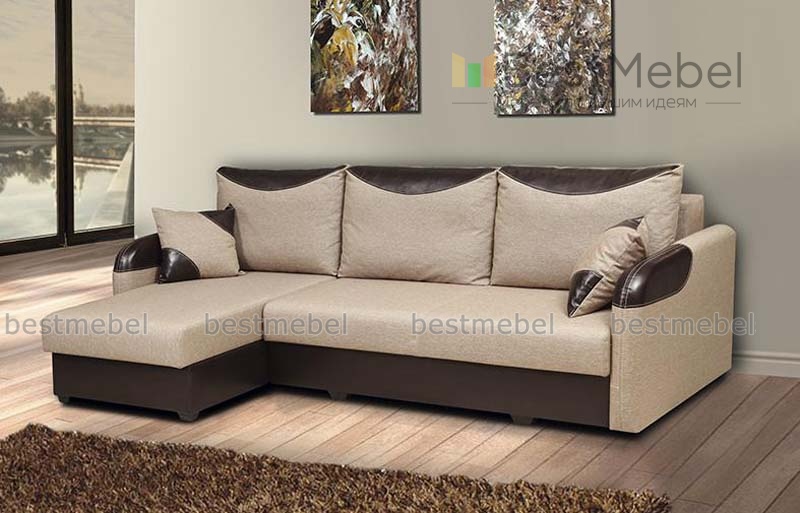 Угловой диван Чикаго - О BMS подарит владельцам комфортный отдых и по максимуму использует возможности помещения. Современная модель в спокойной бежевой гамме представляет собой комбинацию просторного сиденья и секции-тахты. Узкие подлокотники экономят пространство и увеличивают полезную площадь дивана. Основание и декоративные вставки выполнены в экокоже контрастного цвета. При помощи механизма «Еврокнижка» диван легко превращается в кровать. Купить угловой диван Чикаго - О BMS приглашаем в наш интернет-магазин.