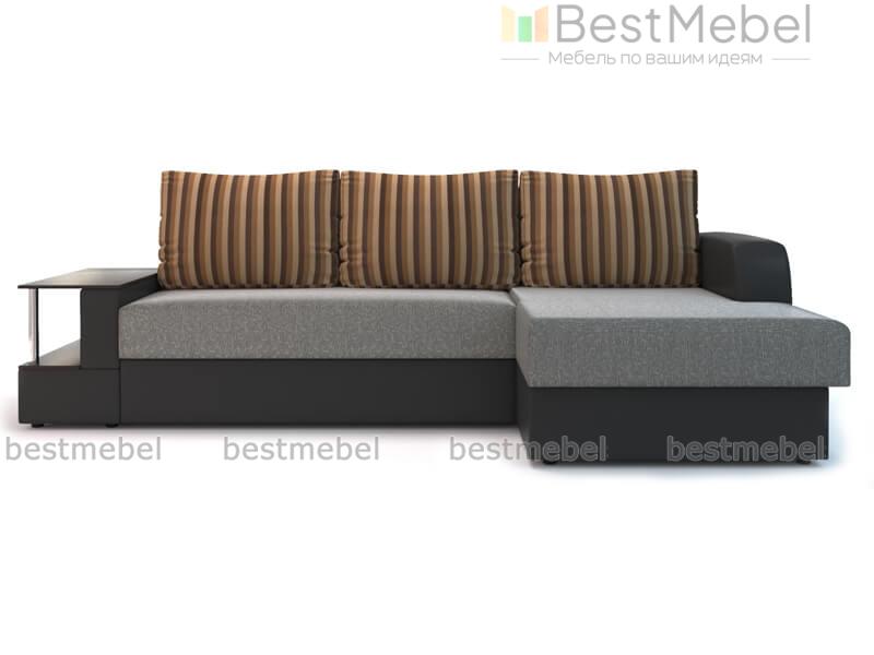 Угловой диван Франк BMS - сдержан и элегантен. Здесь господствуют прямые линии. Материал обивки - искусственная кожа и рогожка, для подушек выбран контрастный материал с принтом. Отличительной особенностью является встроенный журнальный столик, у него два яруса, соединенные никелированными опорами. Для трансформации в спальное место используется механизм «еврокнижка» - сидение выдвигается вперед, а спинка опускается в отрывшееся пространство. В дневное время белье и одеяло может храниться в специальном ящике. Купить угловой диван Франк BMS можно быстро и недорого на сайте нашего интернет-магазина.