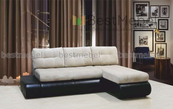 Необычная конструкция дивана Майями удивляет простотой форм. Отсутствие подлокотников как бы расширяет пространство, добавляет света и воздуха. Кровать поможет легко организовать надежный механизм трансформации Дельфин. Для аккуратного хранения постельных принадлежностей модель оснащена ламинированным ящиком, расположенным в основании сидения. На месте, где обычно расположен подлокотник, разработчики мебели решили поместить оригинальной формы приставку-бар. В качестве обивки предлагается сочетание ткани и кожзаменителя. Цвет и тип обивочной материи можно выбрать при индивидуальном заказе.