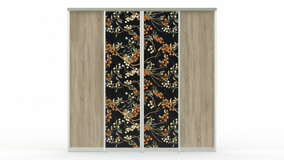 Двери-купе Берн 1 BMS превратят гардеробную в настоящее украшение интерьера. Готовый четырехдверный фасад объединил две створки из ЛДСП в светлых древесных тонах и две с оригинальной цветочной фотопечатью. Прочные благодаря рамам из профиля в оттенке серебро, раздвижные двери комфортны и надежны в эксплуатации, а также значительно экономят полезную площадь комнаты. Купить двери-купе Берн 1 BMS вы сможете в нашем интернет-магазине, подобрав цвет и рисунок по каталогу.