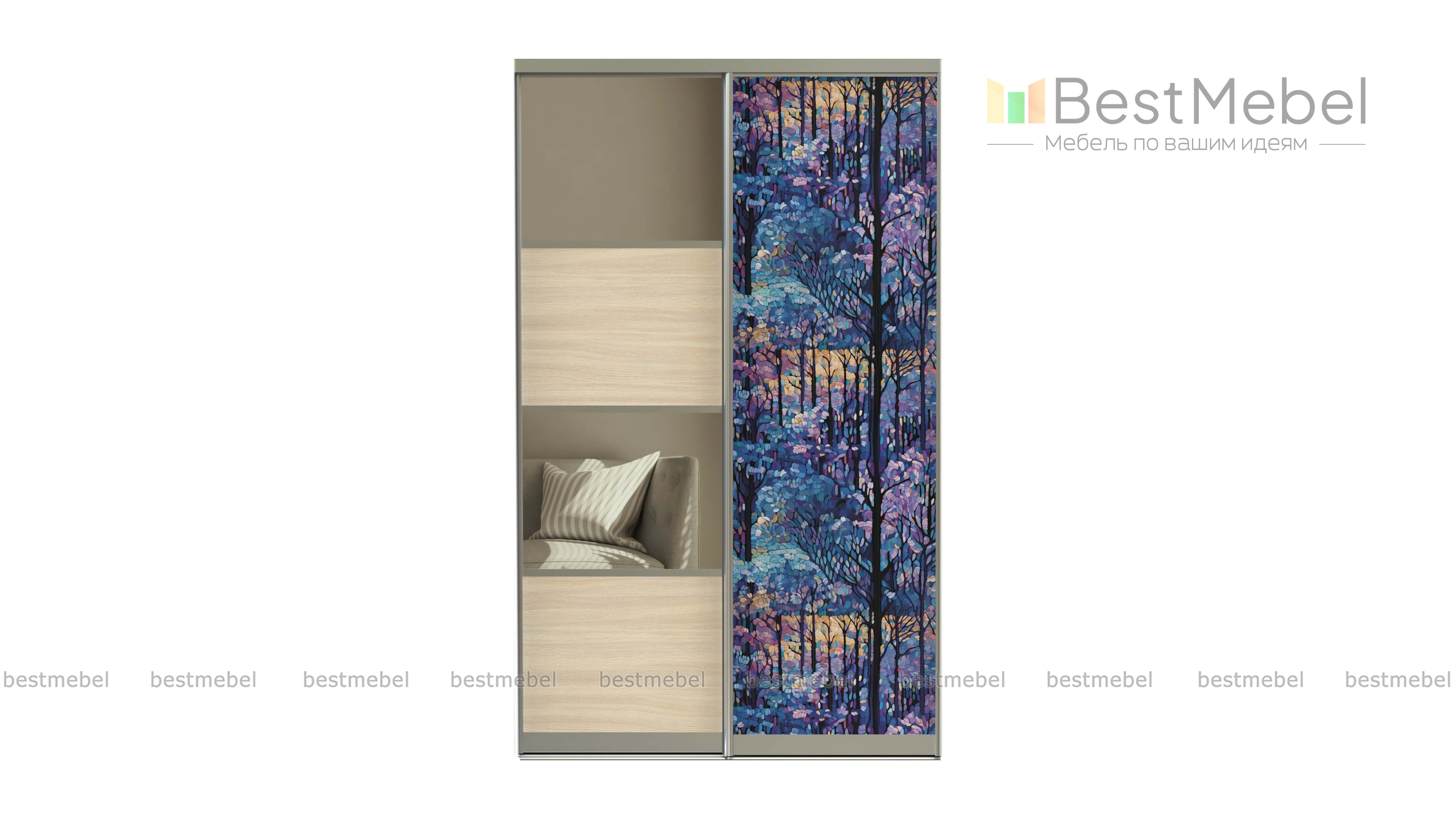 Двери-купе Фаворит 1 BMS можно использовать во встраиваемых и отдельно стоящих шкафах или перегородках. В оформлении одной из створок сочетаются зеркала и ламинированная плита древесных тонов, а другая украшена стилизованной пейзажной фотопечатью. Благодаря качественной фурнитуре двери отличаются надежностью, долговечностью и простотой монтажа. Купить двери-купе Фаворит 1 BMS, изготовленные по вашим размерам, приглашаем к нам в интернет-магазин.