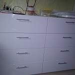 Заказали комод для детской (Заказ №407678) в цвет остальной мебели. Очень вместительный. Дополнили направляющими с доводчиками. А чтобы дети ни за что не цеплялись, при заказе указали вырезы на ящиках вместо ручек. Детали все качественные, крепежные отверстия все совпадают. Спасибо. Будем заказывать еще.