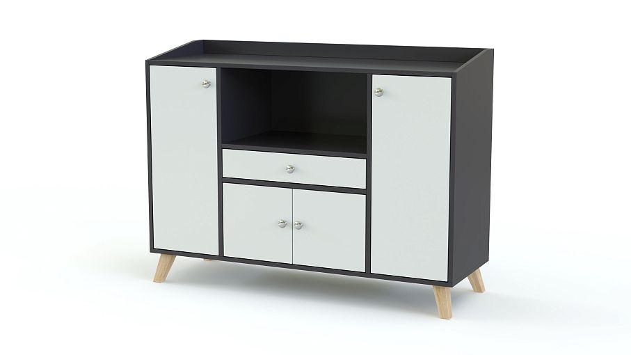 Комод Аллегро 21 BMS смотрится элегантно с корпусом в темных тонах и лаконичным белым фасадом. Широкая низкая модель на устойчивых скошенных ножках легко вписывается в любое из помещений дома и оптимально подходит для размещения декоративных предметов, книг и бытовых мелочей. Комбинированный комод оборудован просторной столешницей с бортиками, распашными отделениями, выдвижным ящиком и нишей. Купить комод Аллегро 21 BMS с выбором фурнитуры и цвета по каталогу приглашаем в наш интернет-магазин.