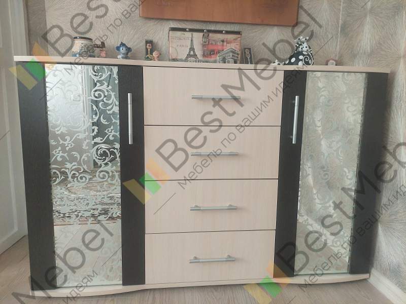 Выбирала комод на БестМебельШоп. Понравился комод Берк-6 BMS.Понравилось, что можно выбрать размер комода и рисунок на стекле.Удобные выдвижные ящики — 4 шт. И 2 отделения по бокам с полками.Комод вписался в интерьер комнаты. Цвет комода подошел к пуфику.И теперь у меня комплект мебели в одном цвете.