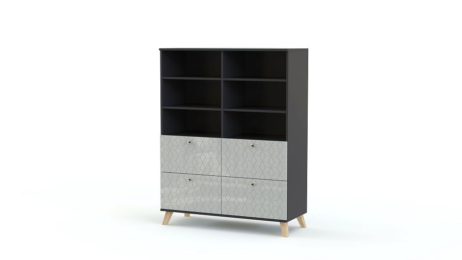 Комод Дания 18 BMS гармонично дополнит популярные интерьеры в стиле лофт или скандинавские. Комбинированная модель объединила открытые полки для книг, декоративных предметов и необходимых в зоне быстрого доступа вещей с четырьмя выдвижными ящиками в основании. Комод выполнен в контрастном сочетании темного корпуса древесных тонов и светлого фасада с фрезеровкой. Высокие опоры упростят уборку в комнате. Купить комод Дания 18 BMS с учетом необходимых параметров приглашаем к нам в интернет-магазин.
