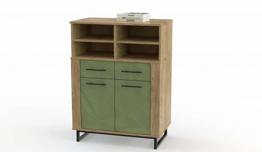 Комод Дельфиниум 3 BMS располагается на высоком металлическом основании, а широкие накладки на фасаде придают ему массивность. Выполненный в натуральных древесных тонах и дополненный фасадом с 3D фрезеровкой, комод составит стильную композицию с мебелью в стиле лофт. Четыре ниши в верхней части комода, два выдвижных ящика и двухдверное распашное отделение обеспечат удобное хранение вещам. Купить комод Дельфиниум 3 BMS вы сможете в нашем интернет-магазине, подобрав цветовое решение.