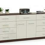 Огромный вместительный комод больше двух метров, огромная вместимость и при этом выглядит легко, за счет небольшой глубины удобно встал в простенок. Я очень довольна и внешним видом и функциональностью.