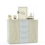 Комод Фиона BMS – это модный минимализм, надежность конструкции и отличная вместительность. Выполненный из износостойкой ЛДСП в нейтральной серо-белой гамме, комод оснащен практичными ручками-рейлингами. Под широкой столешницей, на которой выигрышно смотрятся предметы декора, располагаются четыре выдвижных ящика и два боковых распашных отделения с полками. Купить комод Фиона BMS и легко поддерживать в комнате порядок вам всегда поможет наш интернет-магазин.