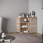 Компактная угловая модель К-У9 BMS позволит рационально использовать свободное пространство малогабаритного помещения. Практичная и оригинальная конструкция предусматривает центральное отделение с открытыми полками необычной треугольной формы и распашные скошенные секции с ручками-рейлингами. Комод позволит разместить технику, книги, предметы гардероба и разнообразные мелочи. Актуальная расцветка натуральных древесных тонов сделает современный интерьер гостиной или спальни по-домашнему уютным.