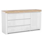 Комод Холден BMS поможет вам легко поддерживать порядок в вещах. Для удобного хранения одежды, аксессуаров и разнообразных бытовых мелочей конструкцией предусмотрены три широких выдвижных ящика и распашное отделение с полкой. Белоснежный глянцевый корпус с лаконичным фасадом без лицевой фурнитуры дополнен столешницей в теплых древесных тонах. Купить комод Холден BMS для интерьера современной спальни или гостиной вы сможете в нашем интернет-магазине.