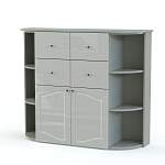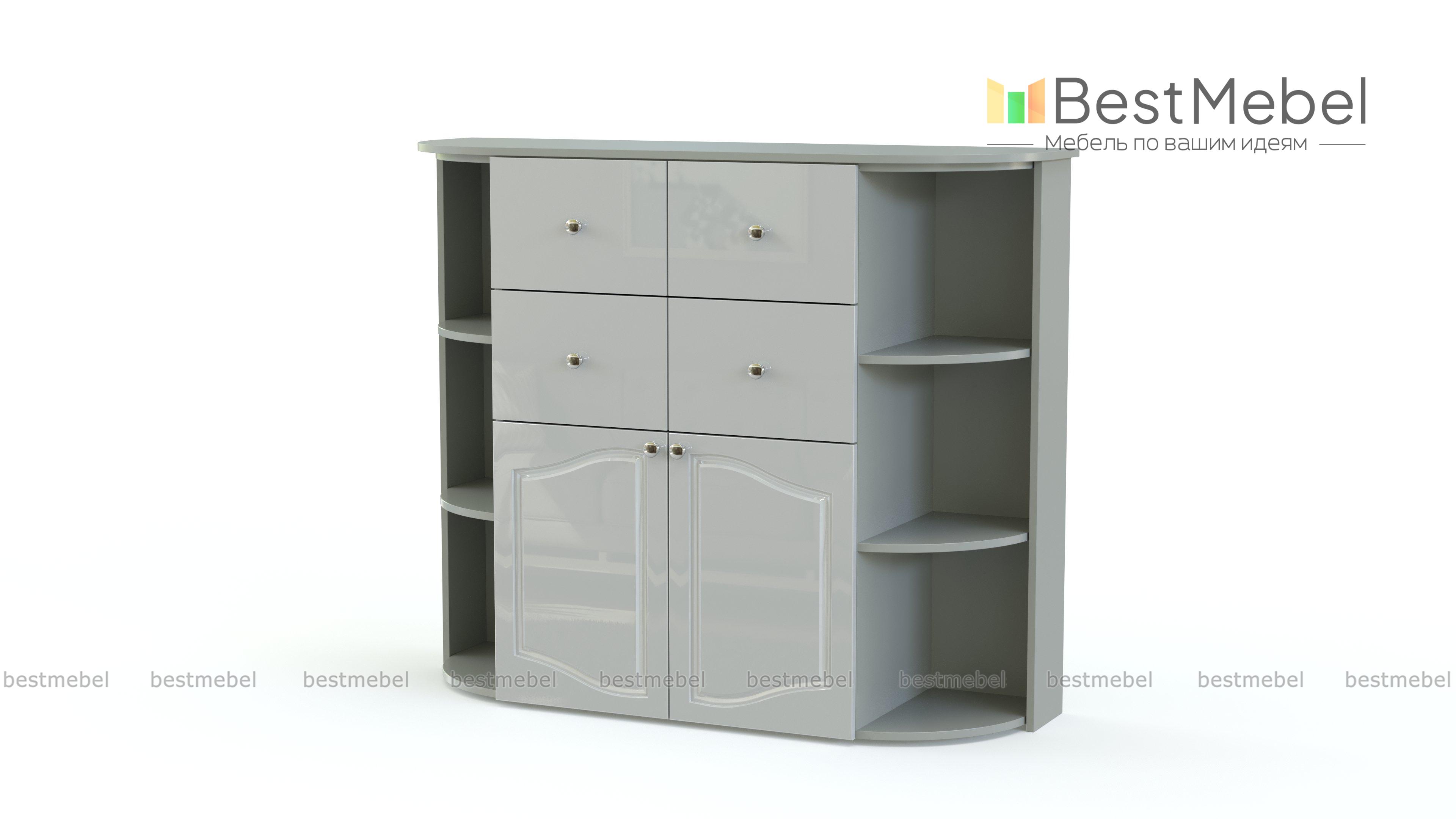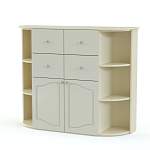 Комод Макар BMS отличается нарочитой массивностью, вместительностью и оригинальным дизайном под старину. Комбинированная модель для гостиной, спальни или просторной прихожей оборудована широкой скругленной столешницей, четырьмя выдвижными ящиками для мелких вещей, распашным отделением и боковыми открытыми полками для книг и декоративных предметов. Корпус и фасад комода выполнены в светлых матовых тонах. Купить комод Макар BMS по выгодной цене вы сможете в нашем интернет-магазине.