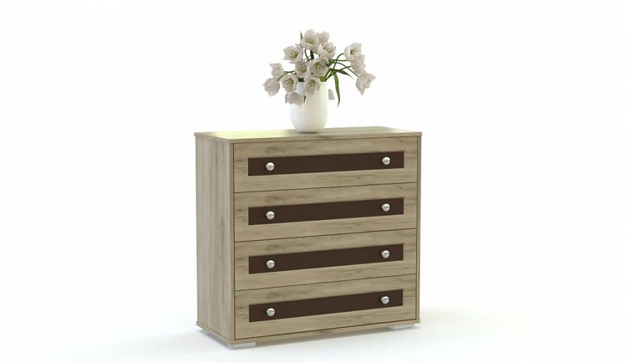 Комод Мона 1 BMS будет уместен в спальне или любой другой комнате. Классическая конструкция с четырьмя выдвижными ящиками и широкой столешницей позволяет компактно разместить постельное белье, одежду и аксессуары, а также декоративные предметы. Рамочные фасады в крафтовых древесных тонах с контрастными вставками оснащены двумя рядами миниатюрных ручек-кнопок. Купить комод Мона 1 BMS приглашаем в наш интернет-магазин с выбором фурнитуры и цвета по каталогу.