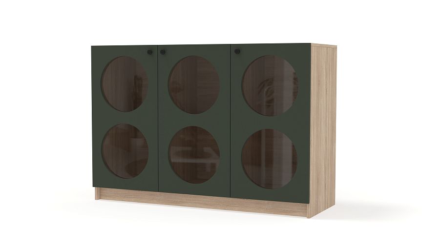 Комод Руди 1 BMS в современном дизайне внесет стильный акцент в интерьер гостиной, спальни или комнаты подростка. Три распашные дверцы имеют круглые вырезы со стеклом, за которым особенно эффектно смотрятся книги, посуда и любимый декор. Внутри комод разделен полками и перегородками на шесть секций, позволяя удобно расположить вещи по категориям. Купить комод Руди 1 BMS с выбором размеров, цвета и фурнитуры вы сможете недорого на сайте нашего интернет-магазина.