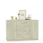 Комод Софино BMS гармонично впишется в современные интерьеры и компактно разместит большое количество вещей. Под широкой столешницей, на которой выигрышно смотрятся декоративные предметы, располагаются четыре выдвижных ящика и два распашных отделения с полками. Актуальный вид модели классического дизайна без декора придает исполнение в натуральных оттенках с имитацией фактуры дерева. Купить комод Софино BMS с учетом оптимальных размеров приглашаем в наш интернет-магазин.