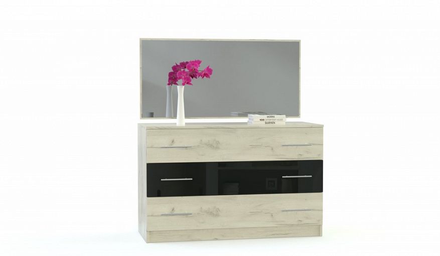 Комод Соната 2.0 BMS выполнен в светлых тонах с имитацией фактуры дерева, на фоне которых эффектно смотрится черная глянцевая вставка. Широкий комод оборудован просторной столешницей и тремя выдвижными ящиками для хранения одежды и домашнего текстиля, оснащенными парными ручками-рейлингами. Дополняет композицию большое навесное зеркало в узкой раме в тон корпусу. Купить комод Соната 2.0 BMS с учетом оптимальных размеров вы сможете в нашем интернет-магазине.