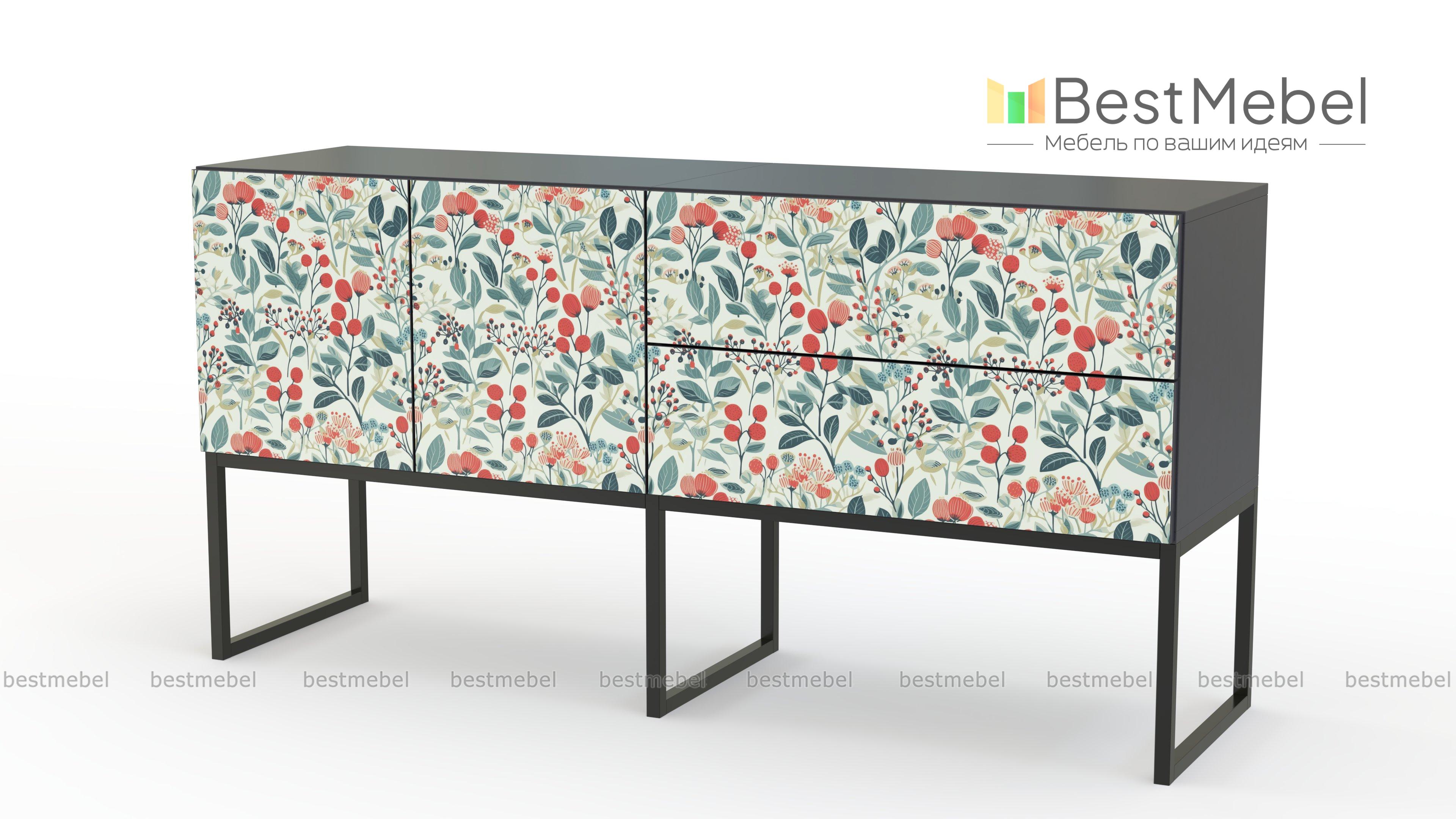 Комод Таис 14 BMS на высоких легких опорах в индустриальном стиле добавит интерьеру тепла. Растительный рисунок фасада прекрасно сочетается с древесными оттенками корпуса, создавая яркий дизайн. Благодаря паре выдвижных ящиков и двухдверному распашному отделению у каждой вещи будет свое место, а столешница подходит для размещения аппаратуры и декора. Купить комод Таис 14 BMS, изготовленный по вашим размерам, приглашаем на сайт нашего интернет-магазина.