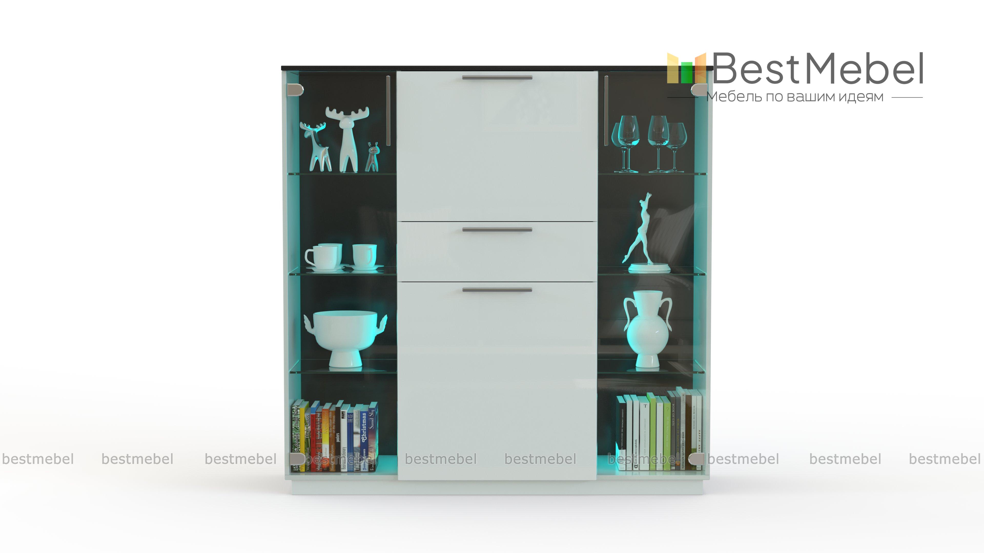 Комод Торо 1 BMS предназначен для меблировки современных гостиных и подчеркнет достоинства минималистичного интерьера. Эффектно сочетая глянец и стекло, комод смотрится легким и не перегружает комнату деталями. В центре модели располагаются глухое распашное отделение, выдвижной ящик для мелочей и откидная барная секция, а по бокам – витрины со стеклополками, выделенными светодиодной лентой. Купить комод Торо 1 BMS приглашаем в наш интернет-магазин по отличной цене.