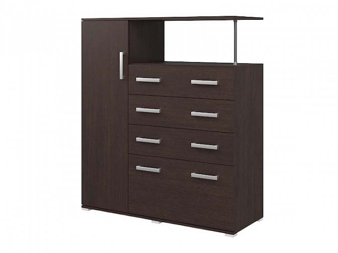 Комод Вента-9 BMS – практичная комбинированная модель для домашнего и офисного интерьера. Комод оборудован четырьмя выдвижными ящиками, нижний из которых более глубокий и подходит для хранения габаритных предметов, распашным отделением с полками и надстройкой на хромированной опоре. Модель лаконична и выполняется в широкой гамме древесных оттенков, которые позволят вписаться в меблировку разного типа. Купить комод Вента-9 BMS и разместить книги, документы и множество бытовых мелочей вам поможет наш интернет-магазин.