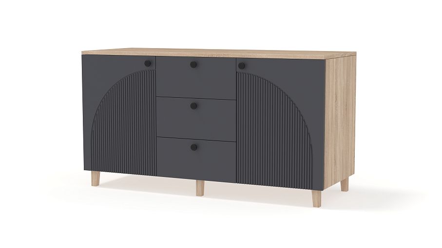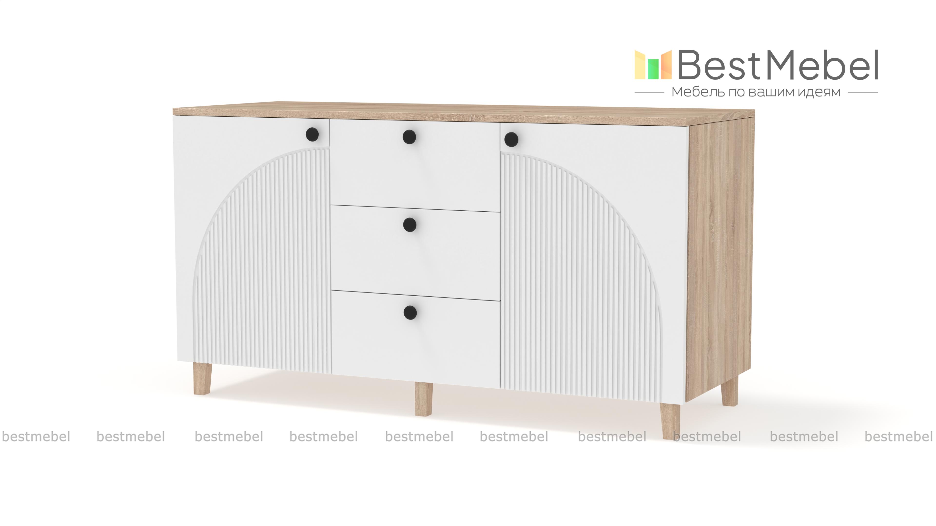 Комод Вивьен 1 BMS — красивый и функциональный, подходит для хранения, размещения техники и декора. Три выдвижных ящика, в которых так удобно хранить мелочи, дополнены просторными распашными секциями по бокам. Широкая конструкция устойчиво располагается на высоких опорах, эстетичный фасад из МДФ украшает оригинальный фрезерованный рисунок. Купить комод Вивьен 1 BMS вы всегда сможете в нашем интернет-магазине, подобрав подходящие именно вам цвета и размеры.
