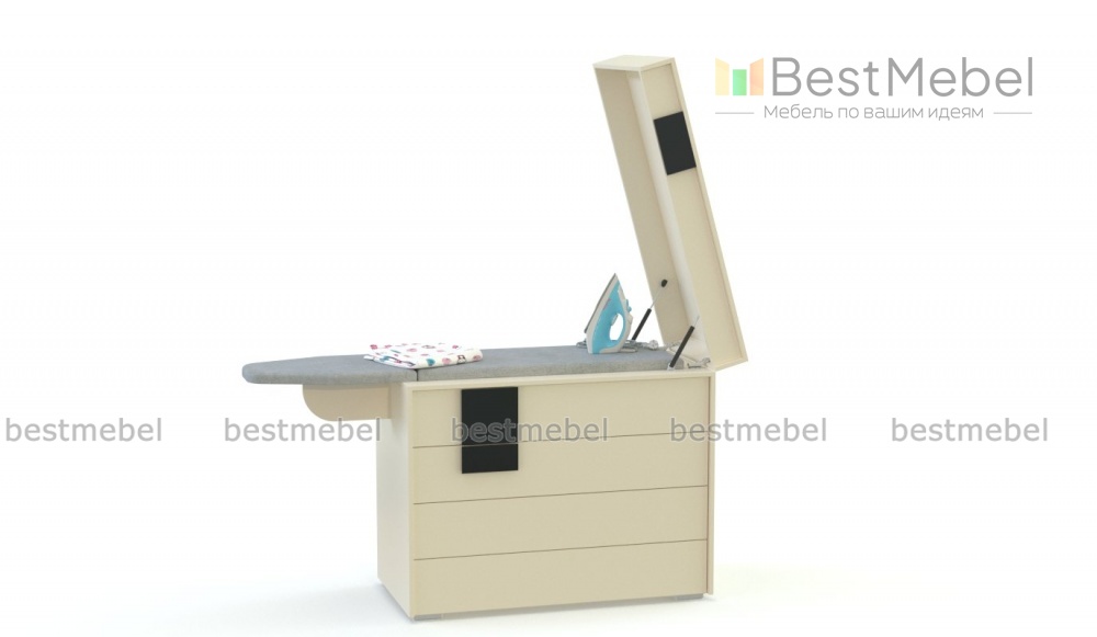 Комод Юдзу-3 BMS – практичный и стильный элемент меблировки. Широкий комод с геометричным декором чуть утопленного фасада выполнен в контрастной черно-бежевой гамме. Трансформер оборудован четырьмя просторными выдвижными ящиками для хранения домашнего текстиля и бытовых мелочей, а также складной боковой секцией и гладильной поверхностью, скрытой под откидной столешницей. Купить комод Юдзу-3 BMS с возможностью изменения цвета и размеров приглашаем к нам в интернет-магазин.