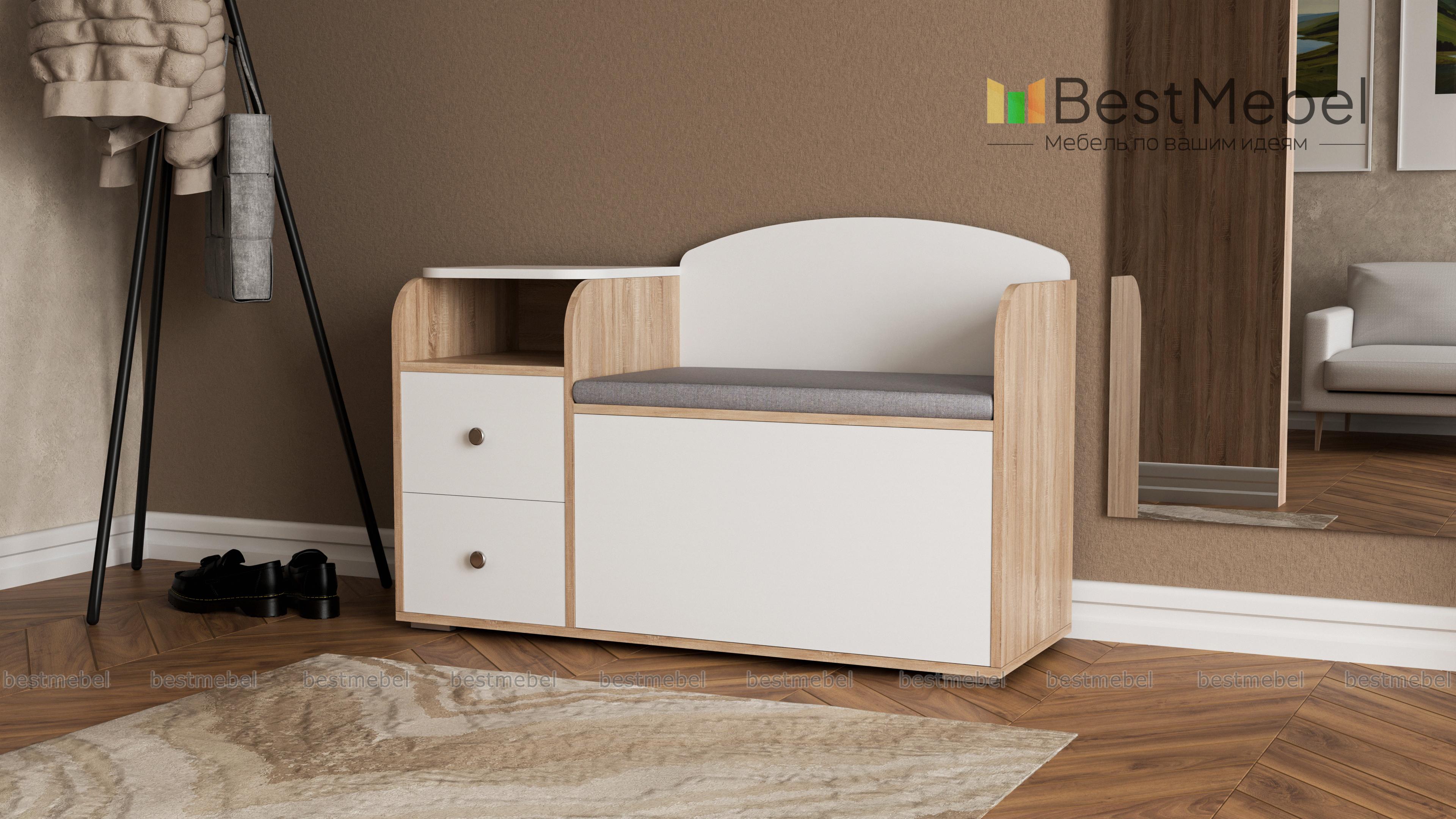 Обувница Дороти BMS будет востребована в небольших прихожих, где актуальна экономия полезной площади. Компактная модель объединила откидное отделение для обуви, тумбу с двумя выдвижными ящиками и нишей для уходовых средств и прочих мелочей, а также сиденье с мягкой обивкой. Высокая спинка сиденья и боковины безопасно скруглены. Выполненная в нейтральных древесных оттенках, обувница универсальна и подходит интерьерам разного типа. Купить обувницу Дороти BMS по доступной цене приглашаем в наш интернет-магазин.