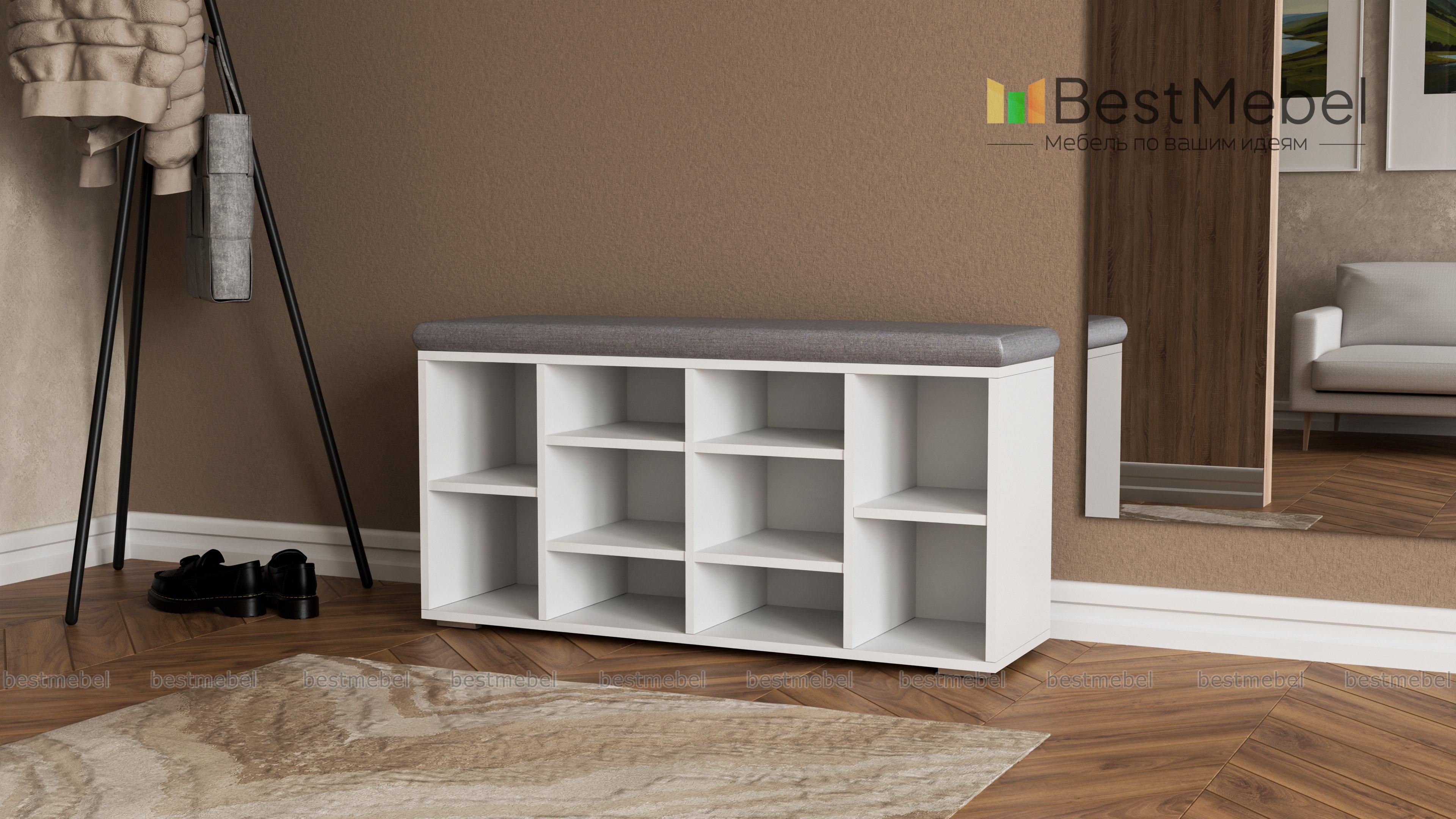 Заказ №00000822618 шикарная обувница! идеально вписалась в интерьер. Удобно, что полочки разной высоты подходят под разную обувь. Обувница устойчива, сидеть на ней очень удобно.