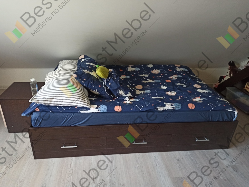 Сынишке купили кровать с ящиками. Счастью не было предела, чувствует себя взрослым и теперь сам складывает своё постельное бельё в ящики. Доставили заказ уже на следующей неделе, старшенький сынок сам собрал конструкцию. Хотим ещё что-нибудь у Вас прикупить, так что ждите...