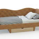 Кровать Пурума 20 BMS с чуть скошенными подлокотниками и волнообразно вырезанной спинкой - прекрасный выбор для организации спального места в молодежной комнате или гостиной. Изящная кровать-софа, украшенная каретной стяжкой, выполнена в износостойком текстиле трендовых оттенков. Высокие ножки в скандинавском стиле делают конструкцию устойчивой и в то же время визуально легкой, а для хранения постельного белья под кроватью предусмотрен вместительный выкатной ящик. Купить кровать Пурума 20 BMS приглашаем на сайт нашего интернет-магазина.