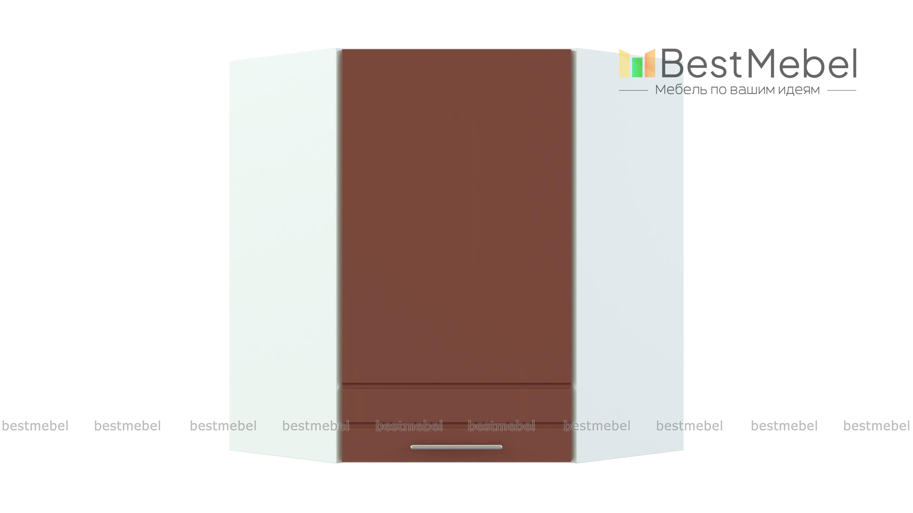 Олимпия шкаф навесной угловой BMS выполнен в форме трапеции и предназначен для стыковки прямых модулей левого и правого крыла кухонного гарнитура. Шкаф позволяет задействовать угловую зону и сэкономить пространство. За распашной дверцей – просторное отделение с полкой, удобное как для посуды, так и для продуктов. Фасад контрастного темного оттенка украшает оригинальный рисунок, который гармонично дополнит орнаменты на других элементах серии. Купить Олимпия шкаф навесной угловой BMS, незаменимый в комплекте Г-образной формы, приглашаем в наш интернет-магазин.