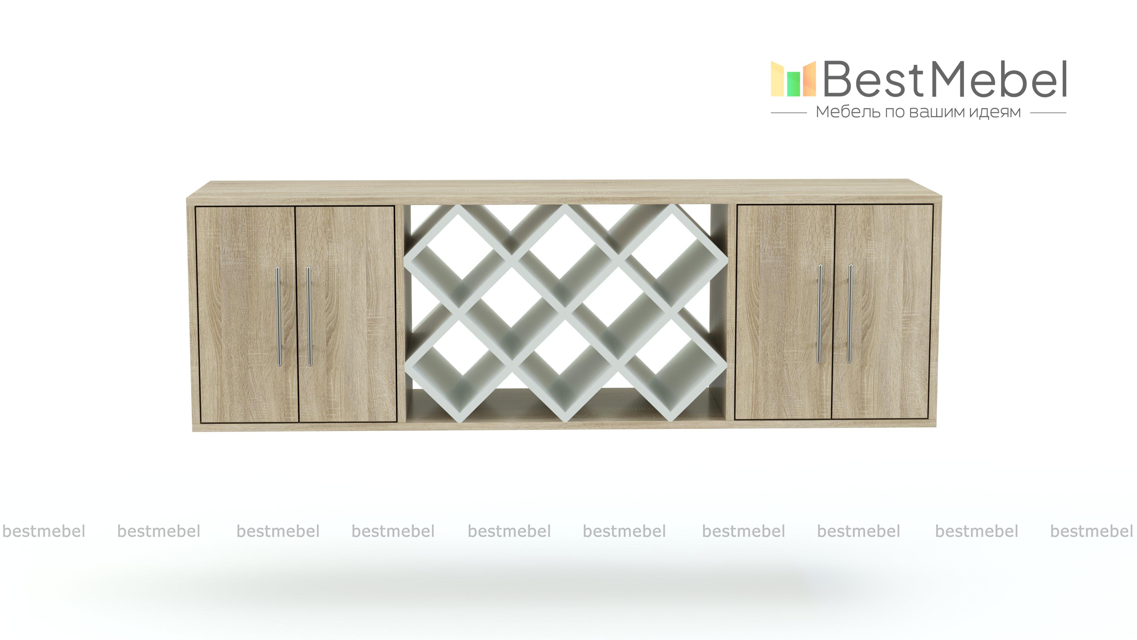 Полка Риддл 16 BMS дополнит систему хранения практичной деталью и украсит интерьер современной кухни. Горизонтальная подвесная модель оборудована расположенной в центре бутылочницей крестового типа и боковыми двухдверными шкафчиками с глухими фасадами, в которых удобно хранить посуду, специи, мелкие вещи. Особенно эффектный вид придает полке контрастное сочетание платины и древесного оттенка с хромированной фурнитурой. Купить полку Риддл 16 BMS приглашаем в наш интернет-магазин.
