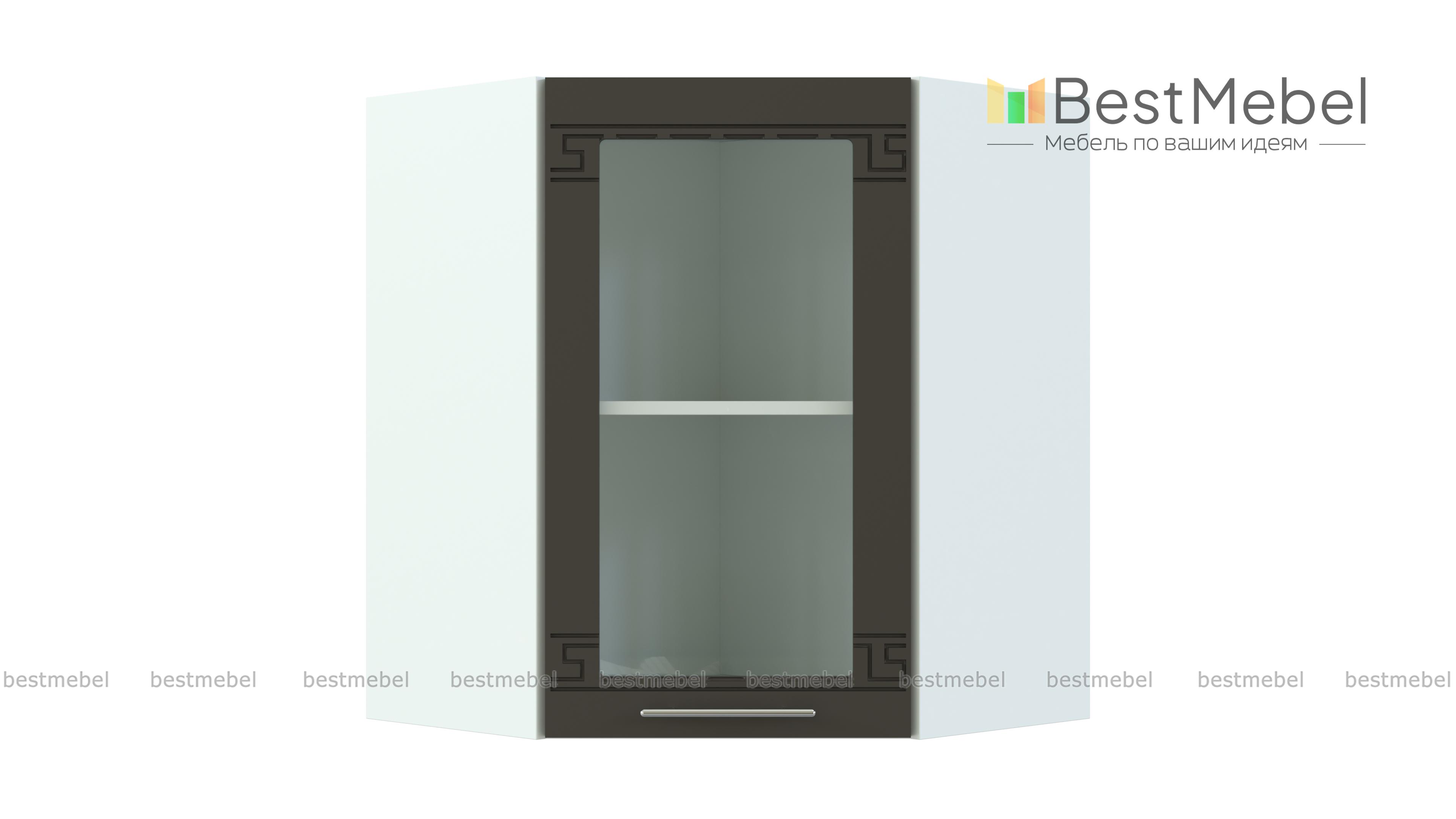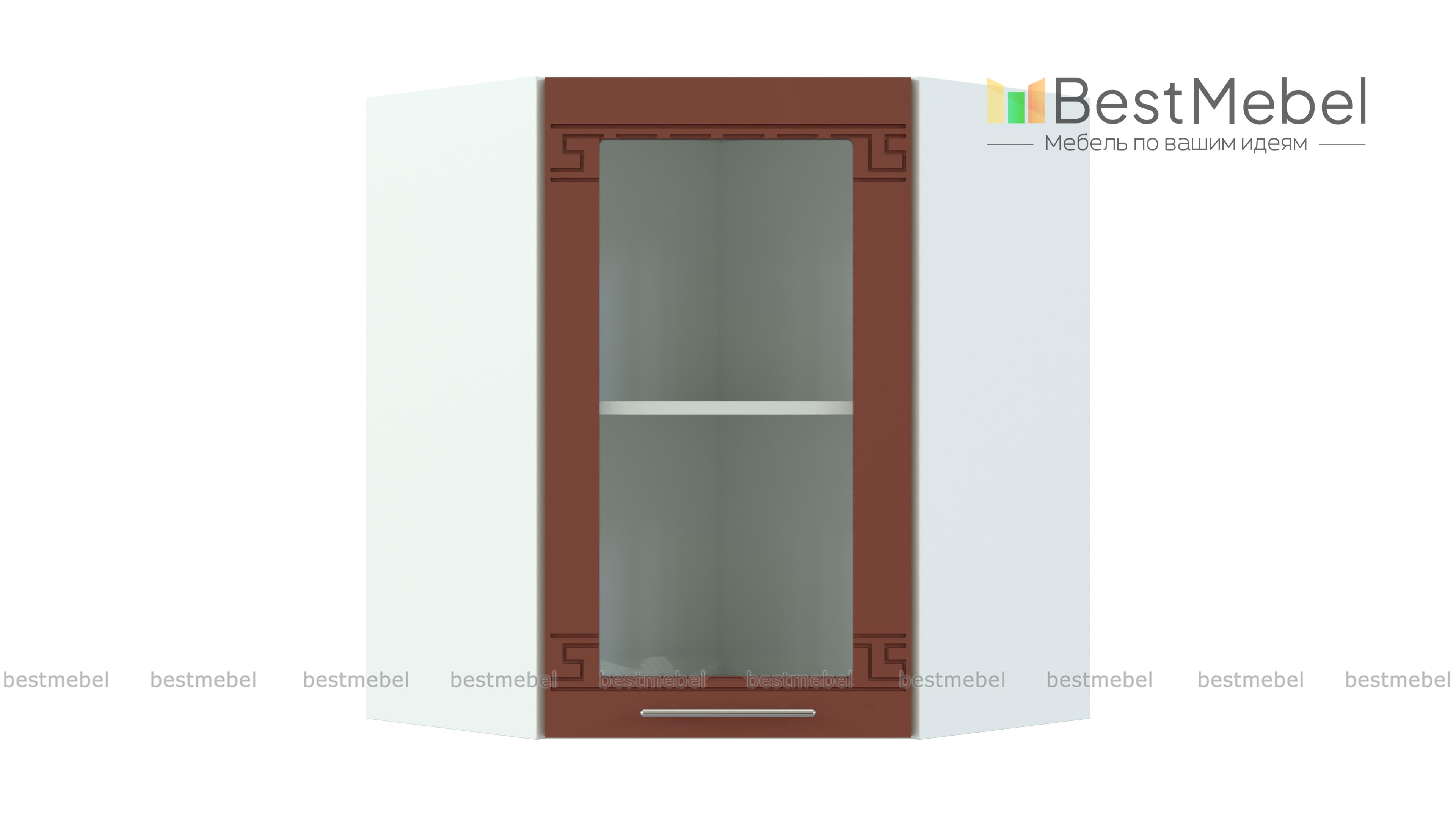 Шкаф навесной угловой со стеклом 590 Греция BMS гармонично совмещает функции стыковочного элемента и элегантной витрины. Шкаф выполнен в форме трапеции и предназначен для присоединения модулей кухонного Г-образного гарнитура. Распашная дверца застеклена, а внутреннее отделение с полкой оптимально для хранения посуды, декоративных предметов, чая и кофе. Купить шкаф навесной угловой со стеклом 590 Греция BMS и выгодно использовать доступное пространство помещения вам поможет наш интернет-магазин.