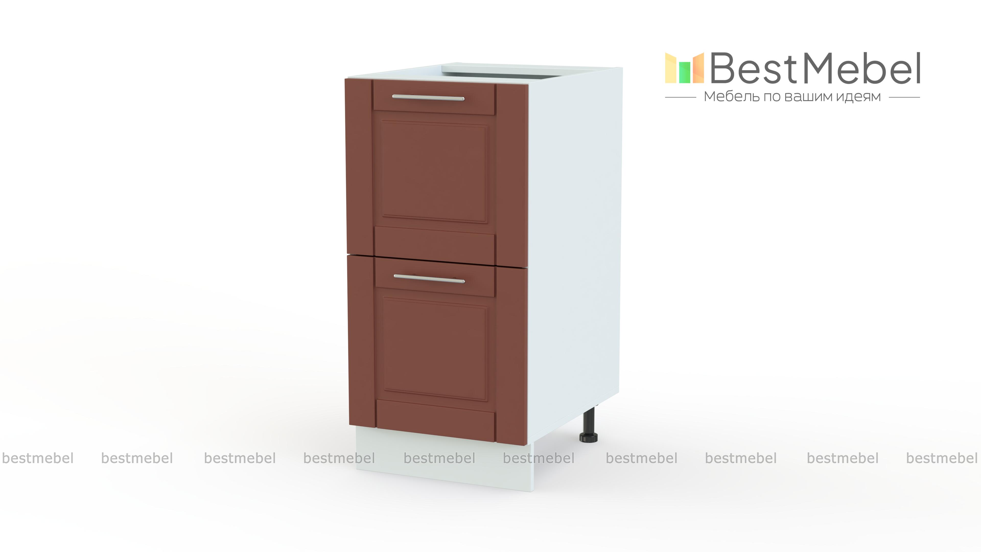 Шкаф нижний 2 ящика Палермо BMS дополнит кухонный гарнитур удобной системой хранения. Модель оборудована двумя глубокими выдвижными ящиками и поможет разместить не только мелочи, но и габаритные предметы – посуду, продукты, домашний текстиль. Классические филенчатые фасады с ручками-скобами под серебро смотрятся в домашнем интерьере особенно уютно и отличаются простотой ухода и износостойкостью. Купить шкаф нижний 2 ящика Палермо BMS, подобрав наиболее подходящее цветовое решение, вы сможете в нашем интернет-магазине.