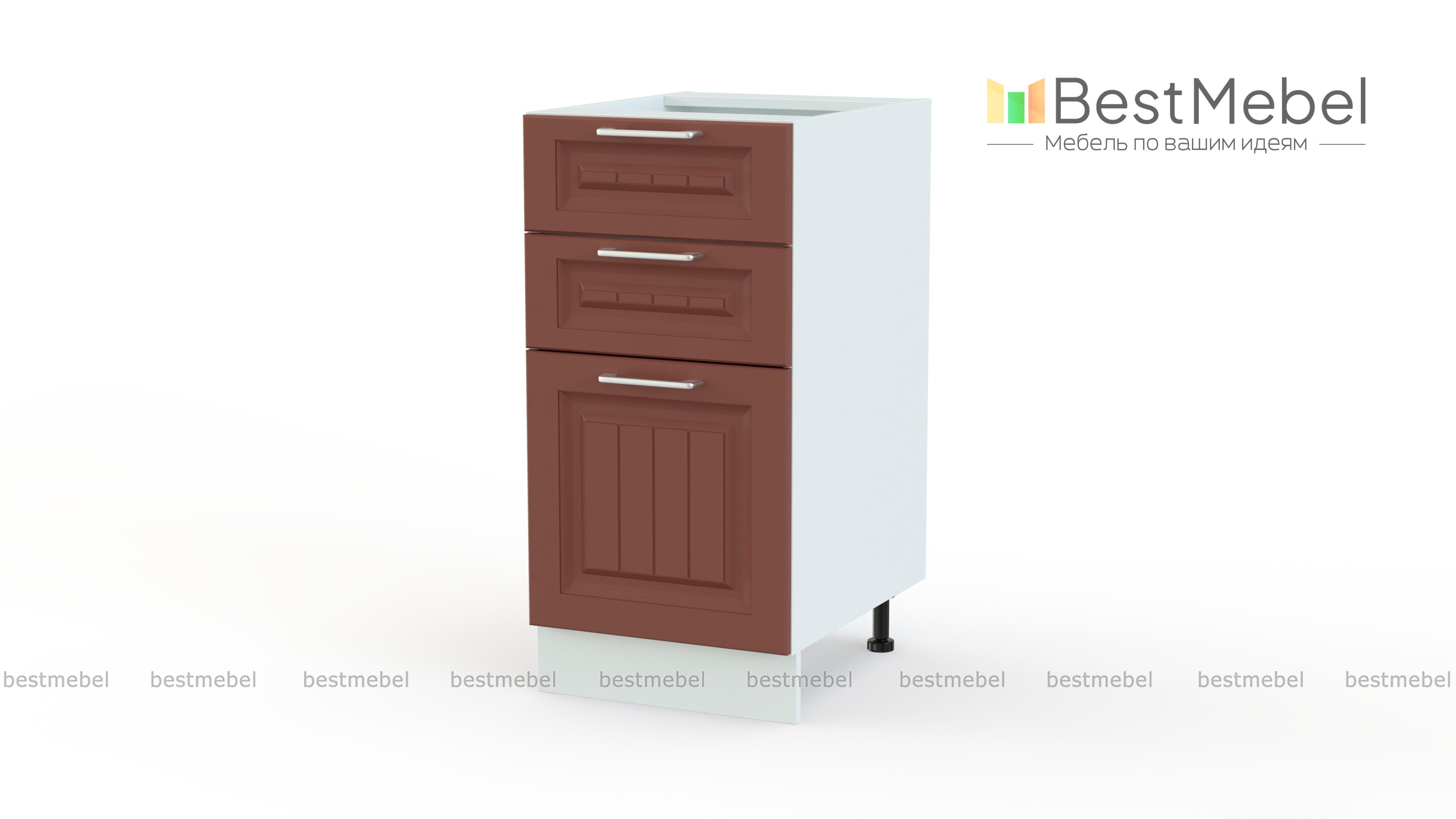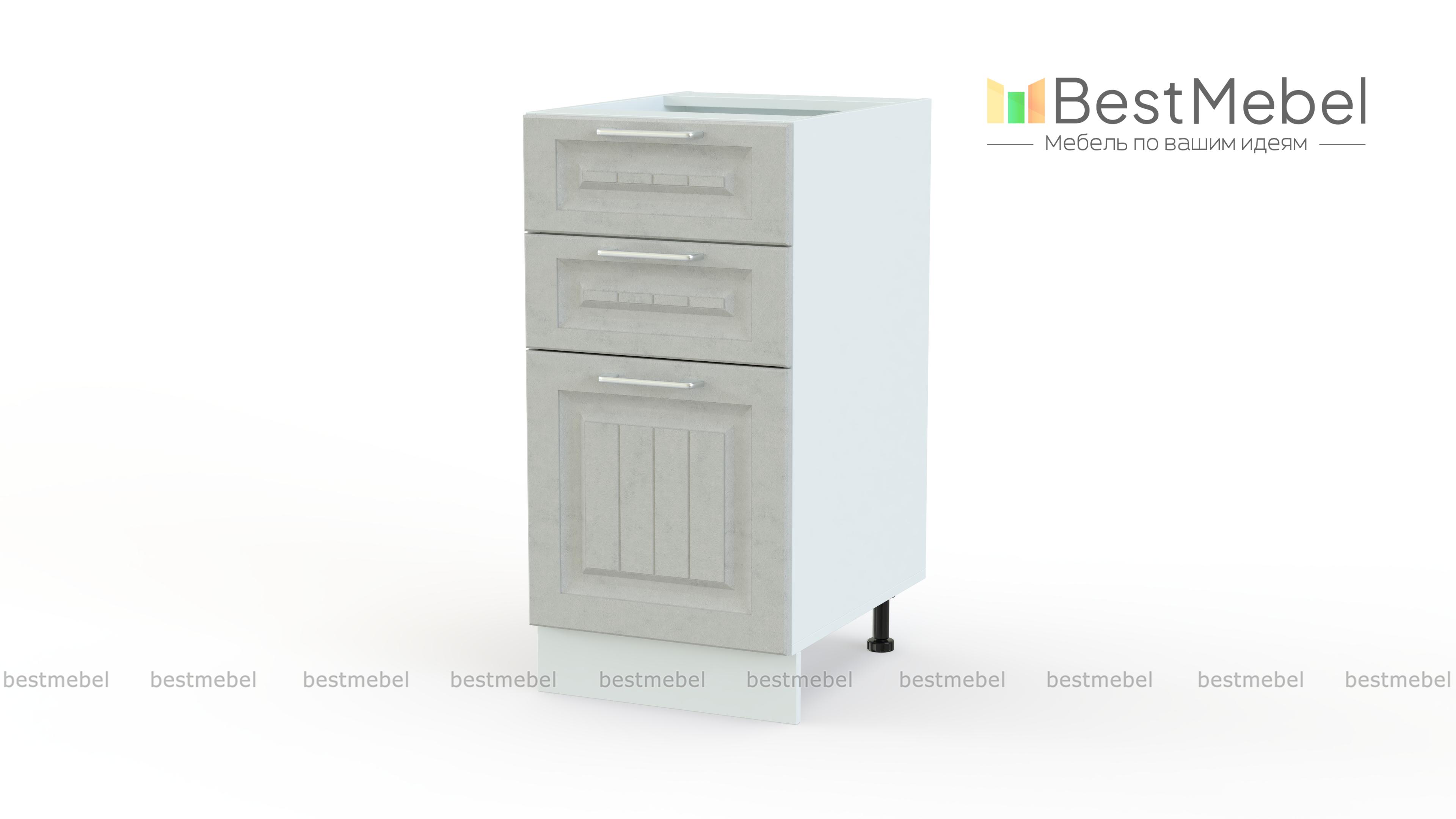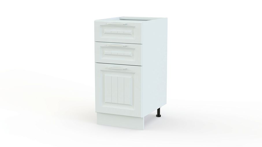 Шкаф нижний с 3-мя ящиками Европа BMS отличается компактными размерами и отличной вместительностью. Узкая модель оборудована тремя выдвижными ящиками – двумя малыми и одним глубоким для хранения столовых приборов и прочих кухонных принадлежностей. Фасады светлых тонов декорированы фрезеровкой и дополнены практичными ручками-скобами с вставками. Шкаф устойчив за счет регулируемых опор, закрытых цоколем. Купить шкаф нижний с 3-мя ящиками Европа BMS, подобрав нужные параметры, вы сможете в нашем интернет-магазине.