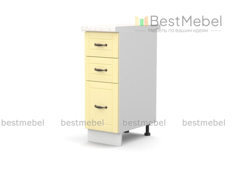Шкаф нижний с 3-мя ящиками Канди BMS – это компактные размеры, вместительность и сдержанная элегантность. Шкаф станет гармоничным дополнением модульного комплекта для кухни и отлично подходит для хранения мелочей. Модель оборудована тремя выдвижными ящиками – двумя малыми и одним глубоким. Рамочные фасады украшают изящные и практичные ручки-скобы. Купить шкаф нижний с 3-мя ящиками Канди BMS, подобрав наиболее подходящее цветовое решение, приглашаем в наш интернет-магазин.