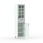 Шкаф-пенал со стеклом Парма BMS сочетает в себе практичность и эстетику современной классики. Фасады нижнего распашного отделения, оборудованного полками, и выдвижного ящика имеют рамочное оформление, а витринная секция украшена декоративной решеткой. Конструкция пенала прекрасно подходит для размещения красивой посуды и декора, хранения кухонной утвари и продуктов. Купить шкаф-пенал со стеклом Парма BMS вы сможете в нашем интернет-магазине с выбором размеров, цвета и фурнитуры.