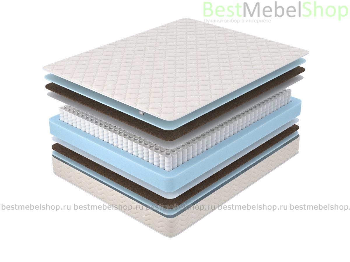 Состав: ППУ 1см/Кокос 1см/Спанбонд/EVS420 Comfortpoket 14см/Спанбонд/Кокос 1см/ППУ 1см/Короб ППУ.