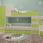 Привлекательная детская двухъярусная кровать Н-2 BMS – продуманная до деталей современная композиция для двоих детей, где представлены зона отдыха и множество вариантов хранения вещей. Спальные места расположены на разных уровнях, их соединяет лестница с широкими нескользкими ступеньками. Длина кроваток различается на 10 см (верхнее 180 см, нижнее 190 см). Элементы конструкции: высокий напольный распашной шкаф с отделениями в основании, рядом подвесной отсек с дверцей. С другой стороны находится блок с выдвижными ящиками (6 штук). В результате поместится одежда, текстиль, игрушки. Постель внизу оборудована своей системой хранения. В цветовой гамме ЛДСП могут сочетаться 2-3 оттенка.