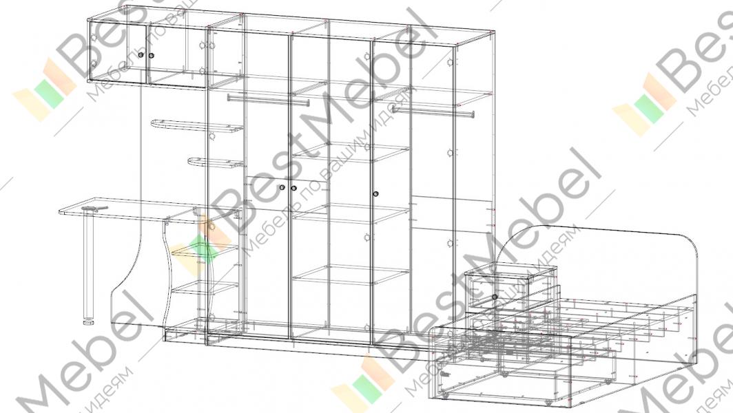 Детская комната Vitamin R BMS – яркая современная модель, которая наполнит атмосферу детской комнаты летними красками и позитивом. В комплект входит все необходимое для полноценного сна и комфортной учебы. Удобная кровать без изножья дополнена тумбой с ящиками для мелочей. Письменный стол оборудован открытыми нижними полками, надстройкой с полками и распашным ящиком. Для хранения предметов гардероба предусмотрен вместительный двухстворчатый шкаф. Купить Детскую комнату Vitamin R BMS по отличной цене вы сможете в нашем интернет-магазине.