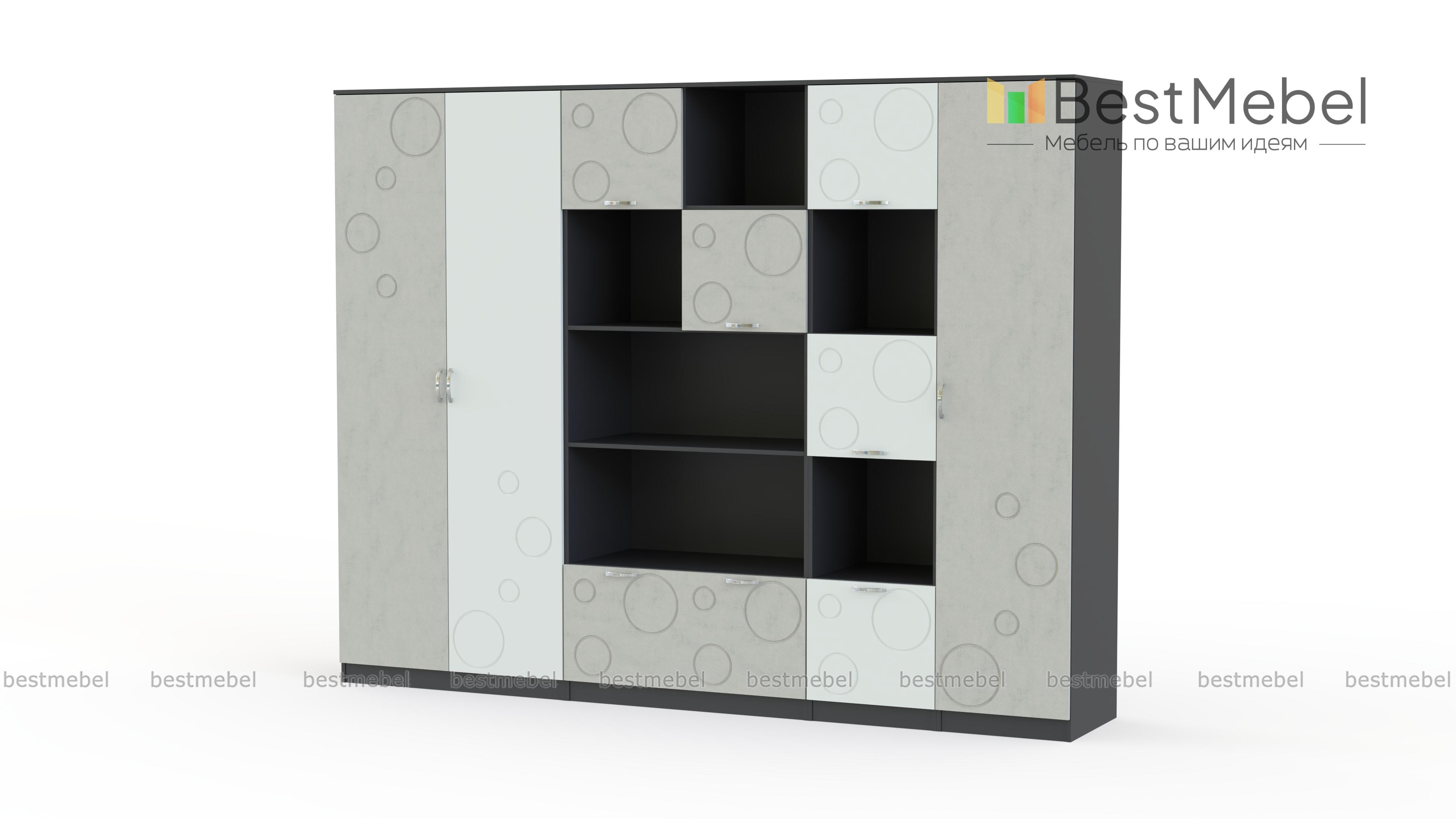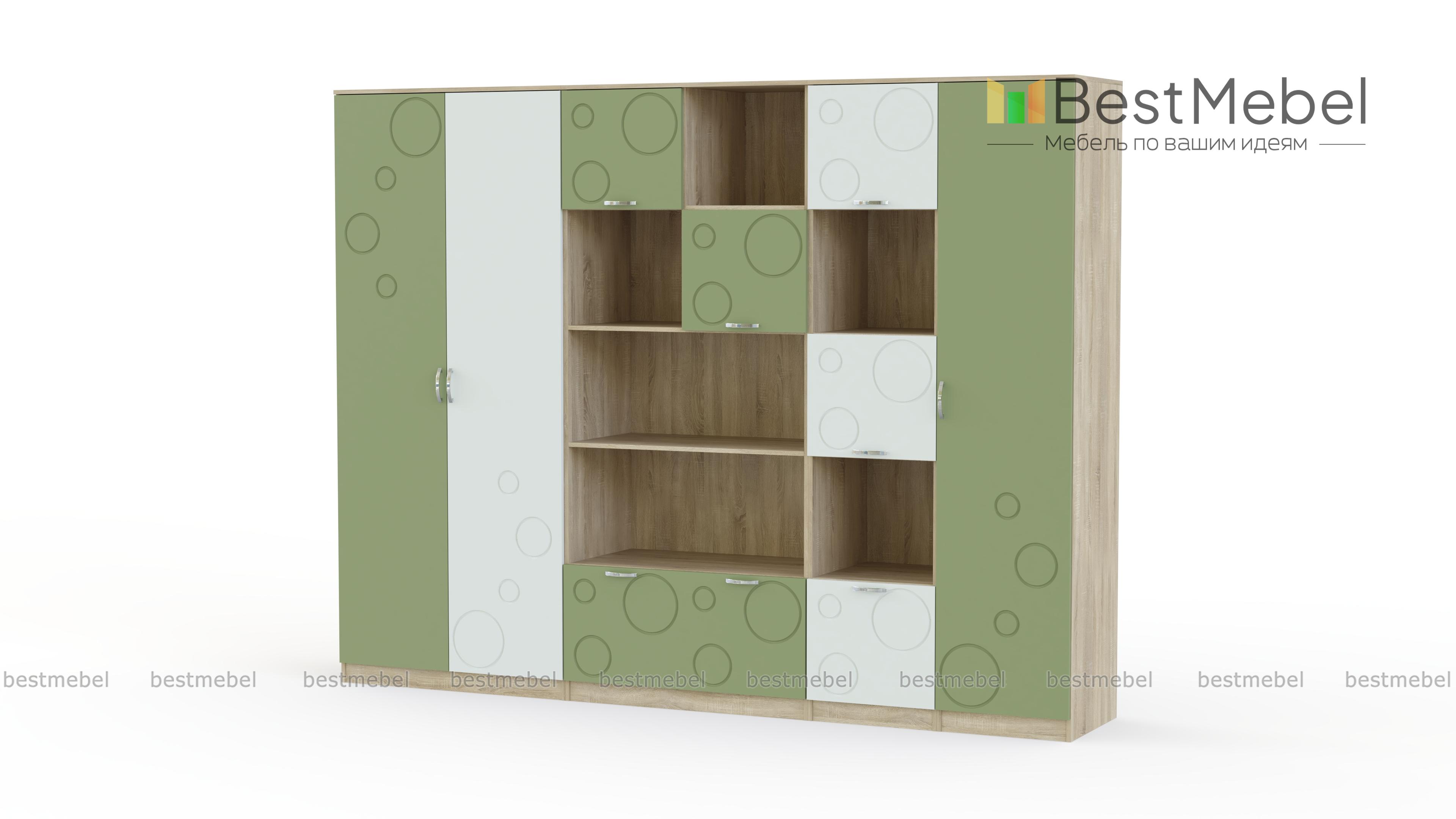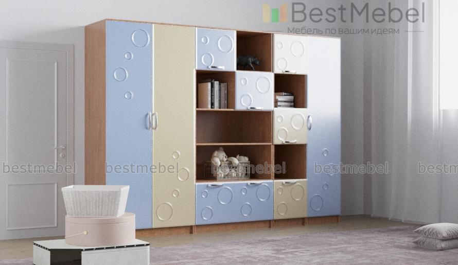 Детская стенка Спринт 1-07 BMS – это современный дизайн и продуманная система хранения, которая удобно разместит вещи ребенка – от предметов гардероба до книг и игрушек. Комплект выполнен в традиционном сочетании корпуса светлых древесных оттенков и пастельных, спокойных цветных фасадов, украшенных неброским симпатичным рисунком. Детская представляет собой композицию из двухдверного платяного шкафа, пенала с полками, комбинированного книжного шкафа и стеллажа с открытыми и глухими отделениями. Купить детскую стенку Спринт 1-07 BMS вы всегда сможете в нашем интернет-магазине.