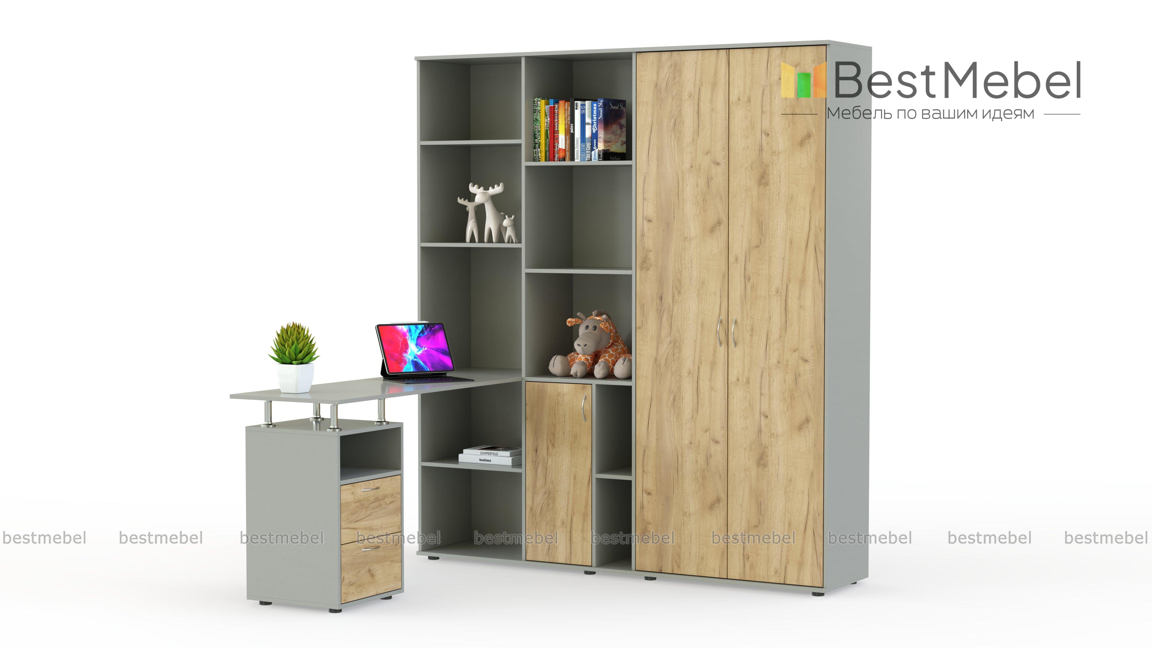Необычное стильное решение для подростковой комнаты - детская стенка Луксор BMS. Угловая конструкция экономит место и позволяет разумно подойти к проблеме освещения рабочего места и размещения необходимых для учебы и отдыха вещей. Комплект оборудован письменным столом с тумбой, удобным стеллажом с открытыми полками, комбинированным пеналом и полноценным двухдверным шкафом для одежды. Актуальная контрастная расцветка в сочетании с хромированной фурнитурой смотрится интересно и современно.