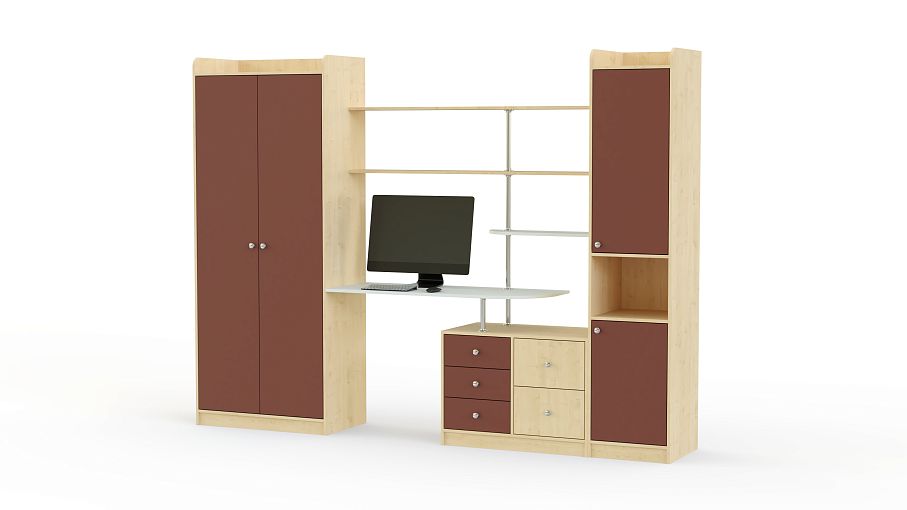 Яркий дизайн детской стенки Стайл 11 BMS не оставит равнодушными ни детей, ни взрослых. Стильная и компактная, она оборудована всем необходимым для хранения игрушек, принадлежностей для творчества и предметов гардероба ребенка. В комплекте шкаф-пенал, тумба, небольшой столик с безопасными скругленными углами, полностью открытые полки и двухдверный одежный шкаф. Наличие металлических опор делает конструкцию визуально легкой и не перегружает помещение.