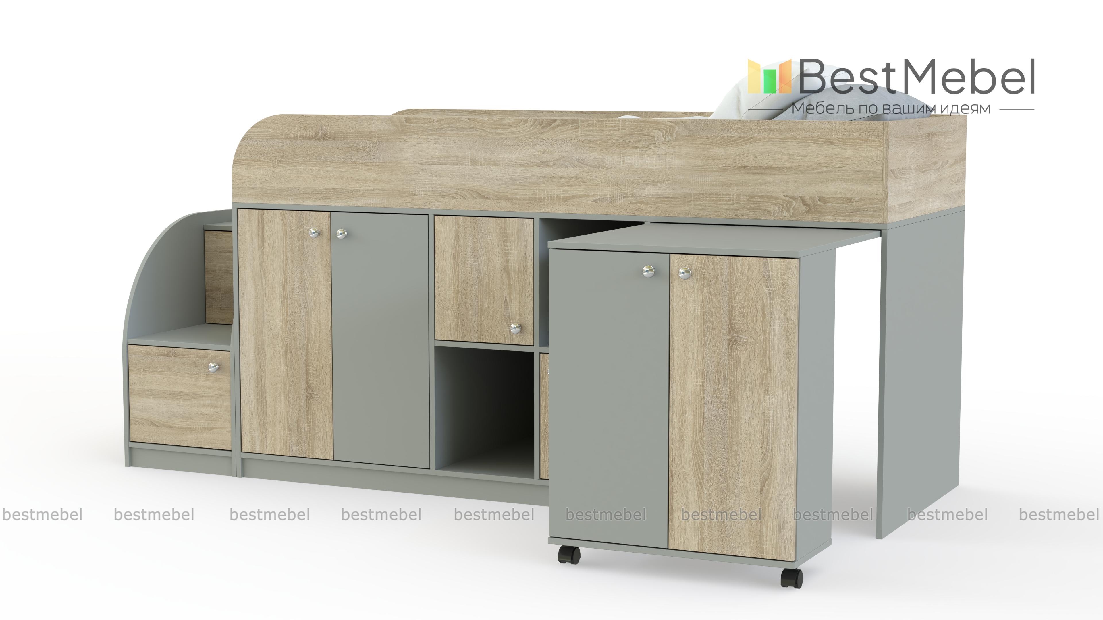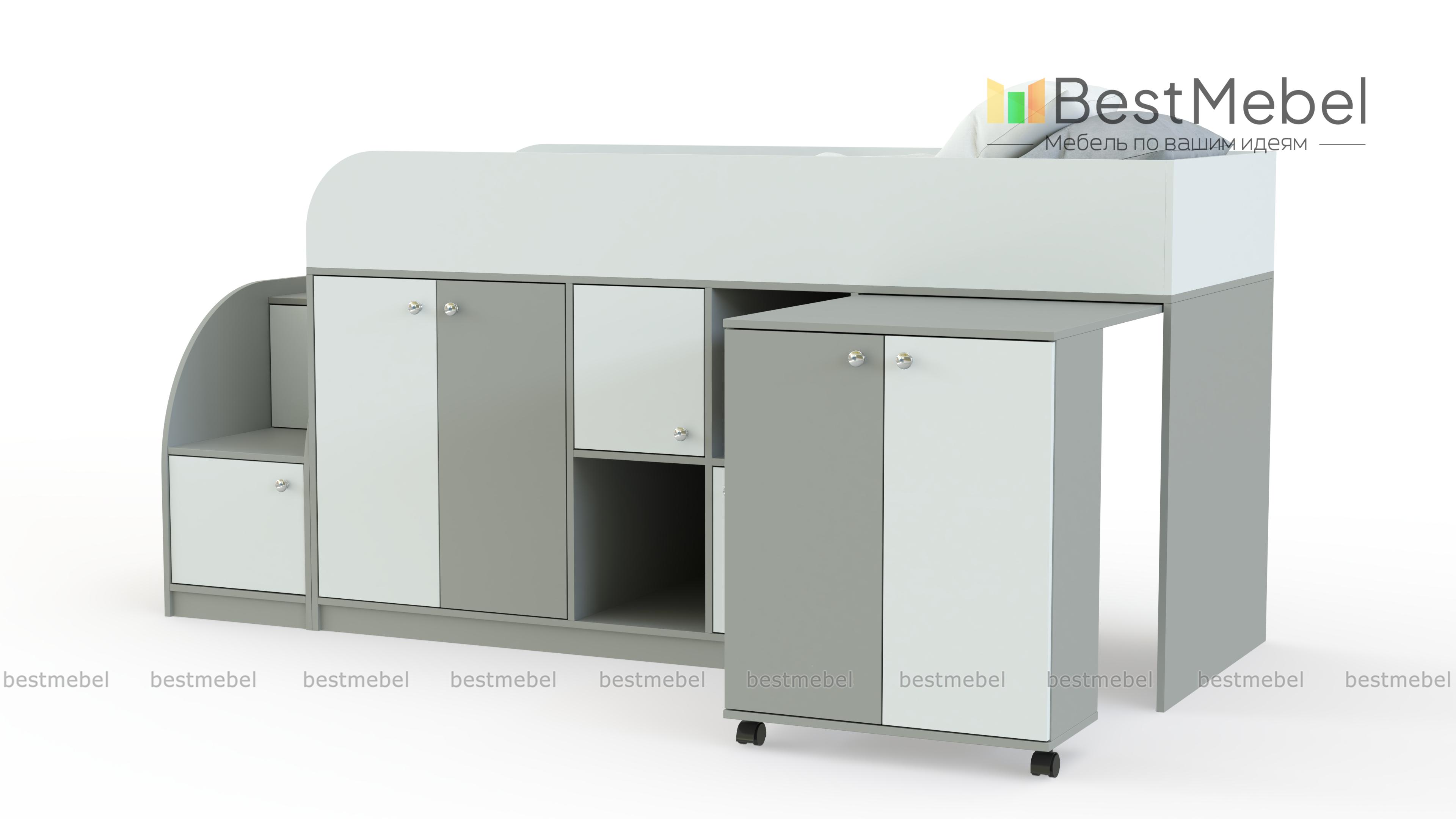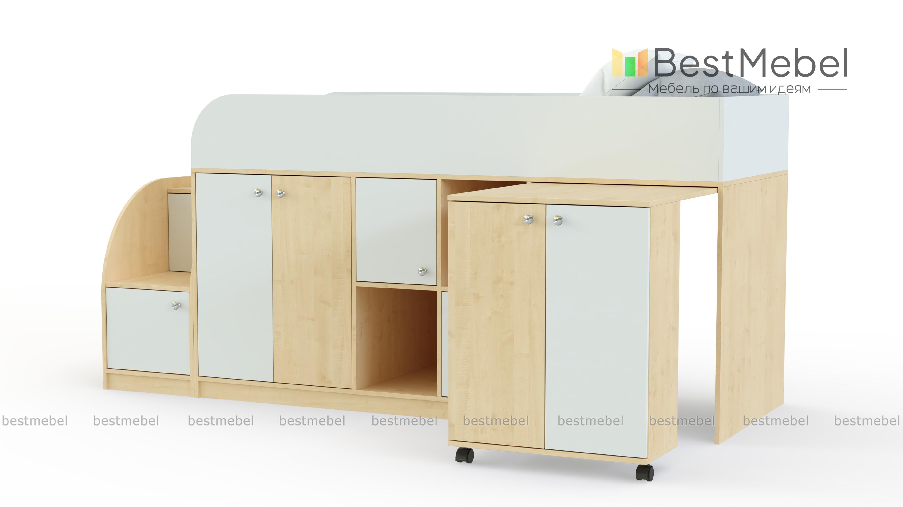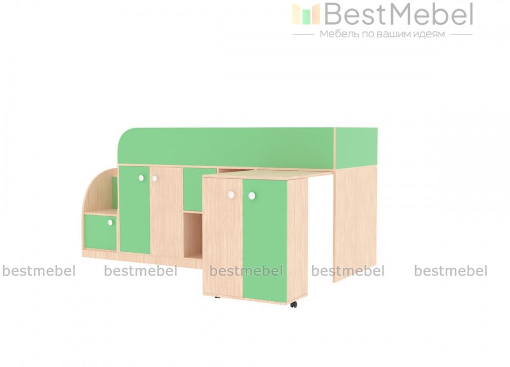 Кровать-чердак Астра мини BMS отличается высокой функциональностью, занимая минимум места. Эффективно использовать пространство детской поможет современная конструкция, включающая в себя комфортное спальное место и множество разноплановых отделений. Под кроватью второго яруса с защитными бортиками располагаются распашные отделения, ниши и выкатной столик с тумбой. Небольшая устойчивая лестница также представляет собой стеллаж и удобна для хранения игрушек. Купить кровать-чердак Астра мини BMS, которая порадует ребенка ярким дизайном, приглашаем в наш интернет-магазин.