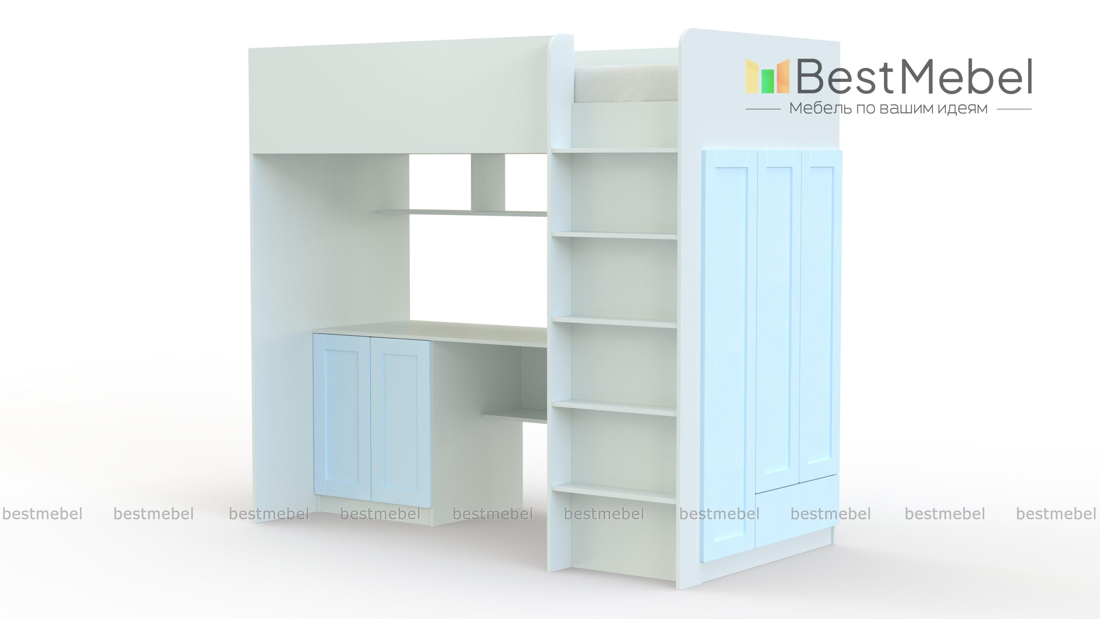 Кровать-чердак Сезам 12 BMS выполнена в современной стилистике с рамочными фасадами, придающими дизайну классическую элегантность. Второй ярус кровати оборудован спальным местом, а на первом находятся письменный стол с распашной тумбой, книжные полки и вместительный гардероб с тремя дверцами и выдвижным ящиком. Возможность выбора цветового решения позволит максимально гармонично вписать кровать в интерьер вашего дома. Купить кровать-чердак Сезам 12 BMS с учетом необходимых размеров вы сможете в нашем интернет-магазине.