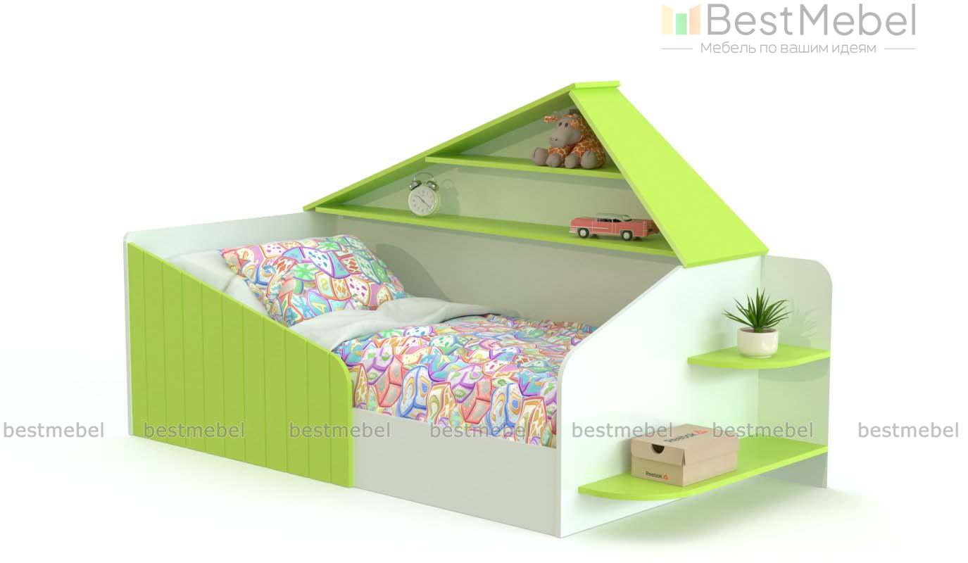 Кровать-домик Монти 5.2 BMS выполнена в контрастной древесной гамме и поможет оборудовать уютную спальню для девочки. Просторное спальное место дополнено защитным бортиком с вертикальной фрезеровкой, имитирующей заборчик, а задняя стенка кровати в форме крыши оборудована открытыми полками для книг и игрушек. На боковине закреплены две безопасно скругленные полочки для мелочей. Купить кровать-домик Монти 5.2 BMS с возможностью выбора цвета приглашаем в наш интернет-магазин.