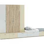 Кровать со шкафом Сказка 21 BMS станет отличным решением для небольших и узких комнат, помогая рационально организовать пространство. Композиция объединила кровать и расположенный на подиуме трехдверный шкаф с платяным отделением, бельевыми полками и торцевым книжным стеллажом. Расположенные в основании кровати и подиуме выдвижные ящики удобны для хранения постельных принадлежностей и игрушек. Купить кровать со шкафом Сказка 21 BMS, выполненную в сочетании древесных тонов и белого с яркими акцентами, приглашаем в наш интернет-магазин.